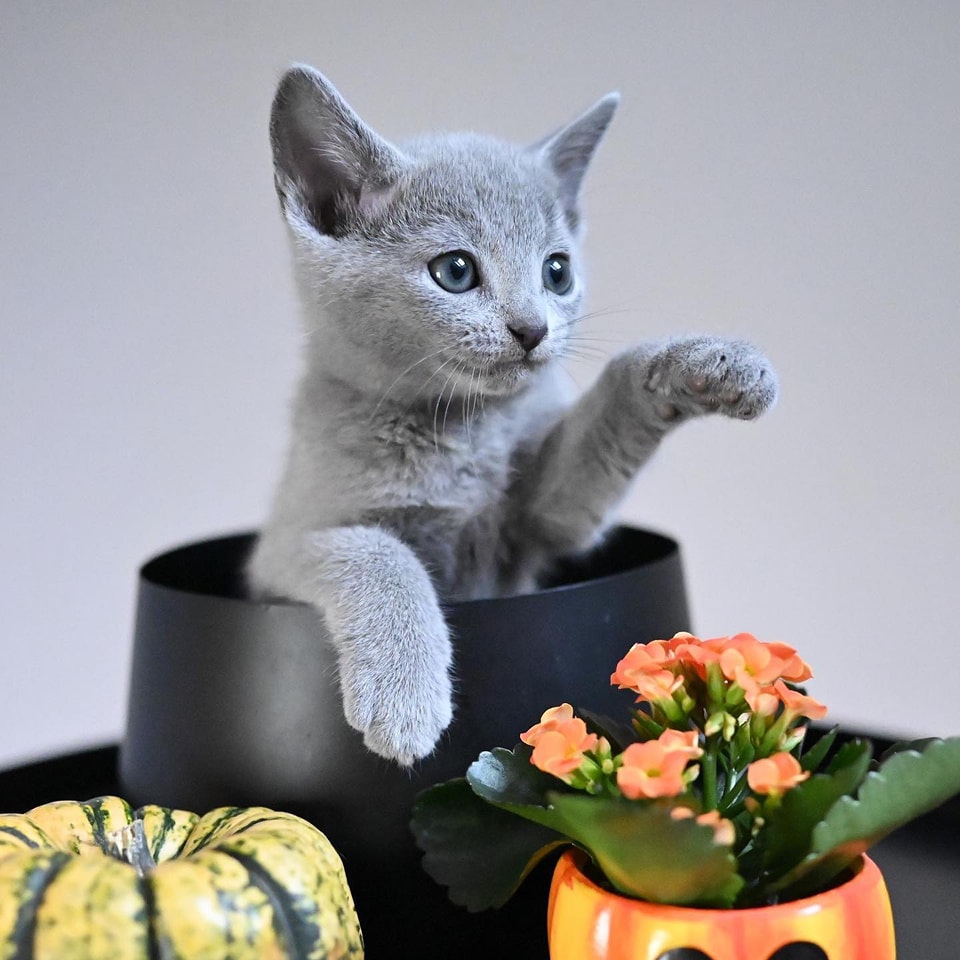Discover our Russian Blue kittens, each raised with care and ready to bring joy to your home.