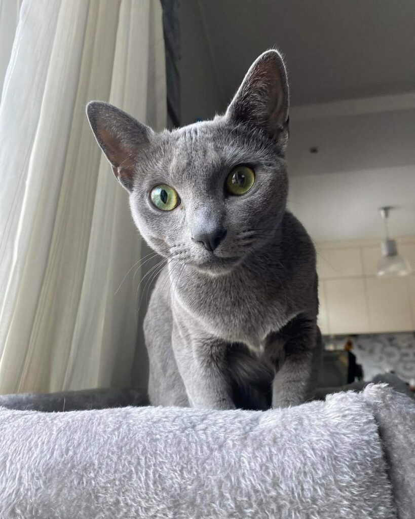 There are many breeders out there. Some reputable, some very shady. What attracted me to Bobby’s Russian Blues site is how modern it was: there was transparency regarding what kittens are available, photos, how to get on the waiting list, shipping info, etc. It is the most perfect site out there, because other sites could use some work. Bobby’s Russian Blues is very responsive and understanding. Some breeders took a month to respond to my initial email. Now about Kirill. When I saw his photo I knew he was going to be mine. And even though I got him at 7months old, we have bonded extremely well. He follows me everywhere. He is the sweetest, cuddliest kitten I’ve ever met. I was told he’s a bit on the shy side and he was shy for a few days, but then he took ownership of his new home and made himself very comfortable. He’s very smart, curious and playful, and is just pure, unadulterated love. He brings me so much joy everyday. Thank you Jessica!